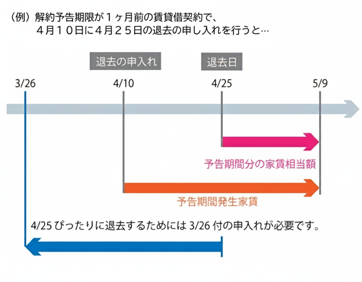 退去の申入れから退去日までの期間が予告期限に満たない場合、違約金が発生します。